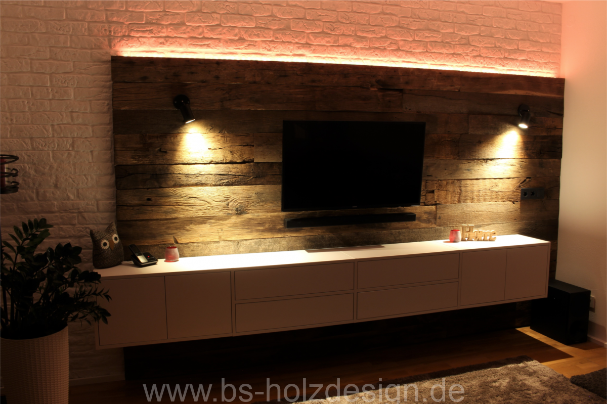 TV Wandboard mit Altholz Eiche gehackt: