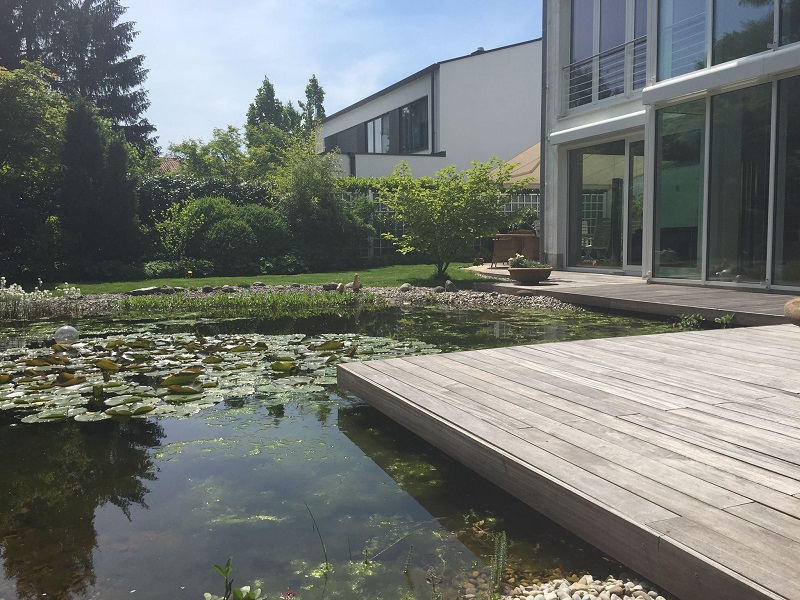 Eine Poolumrandung aus Holz ohne Schrauben von oben verlegen und dennoch einzelne Dielen demontierbar – dank Clipsystem und Alu Unterkonstruktion!