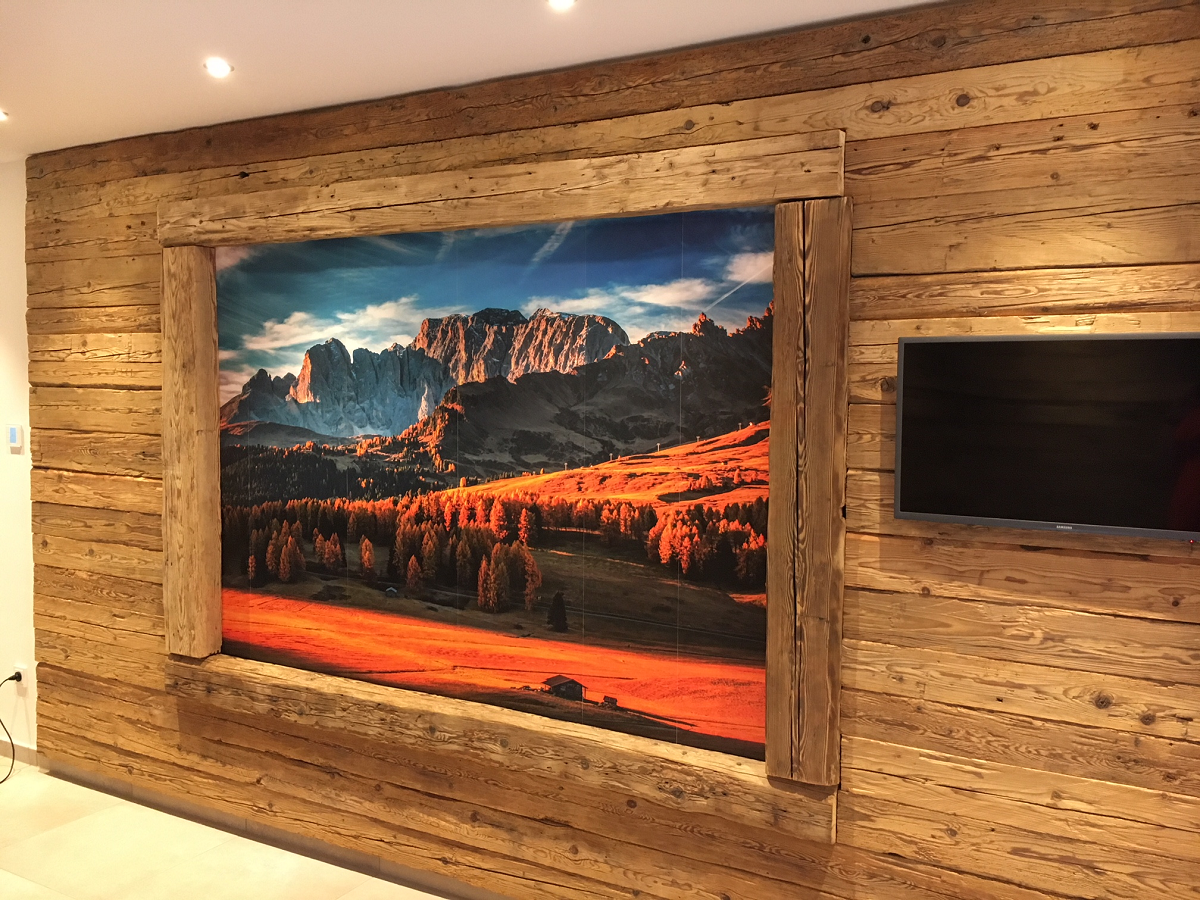 Altholz Wandverkleidung Bretter Fichte gehackt beleuchtet